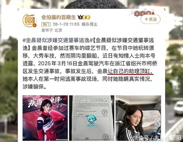 保险公司后来查监控时发现了不对劲,金晨个子高,助理瘦小,开车的人明显是金晨。保险一报案,金晨那边很快找人把案子撤了,条件是她自己掏钱赔损失。这事拖了十个月突然爆出来,可能跟最近她上春晚热度高有关。